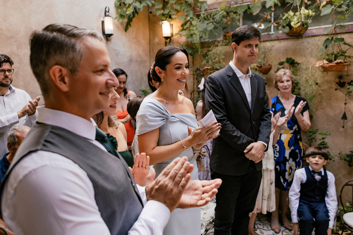 A cerimônia aconteceu ali mesmo, no meio de todos. Sem altar, sem formalidade, sem distância. Somente palavras sinceras trocadas entre quem sempre esteve por perto. Ali, entre risos soltos e crianças conversando, o casamento aconteceu. No tempo certo. Do jeito deles.