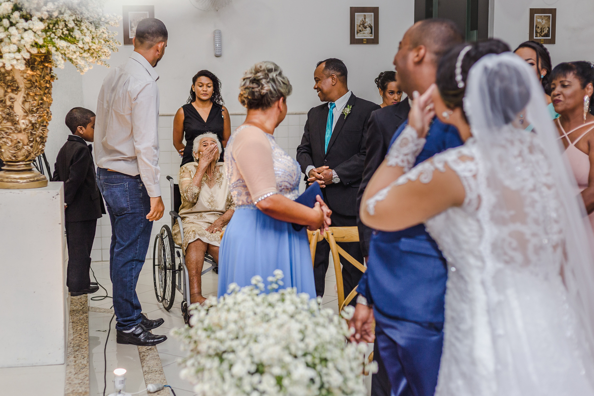 Após uma emocionante cerimônia com direito à uma surpresa do pai da noiva cantando,