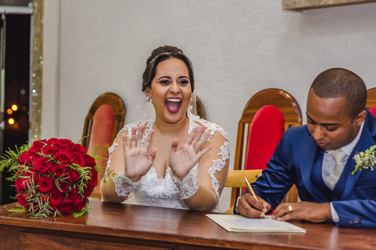 A noivinha estava bem tranquila no making of, e o noivo está super animado. As fotos não nos deixam mentir!
