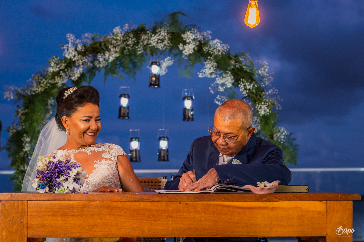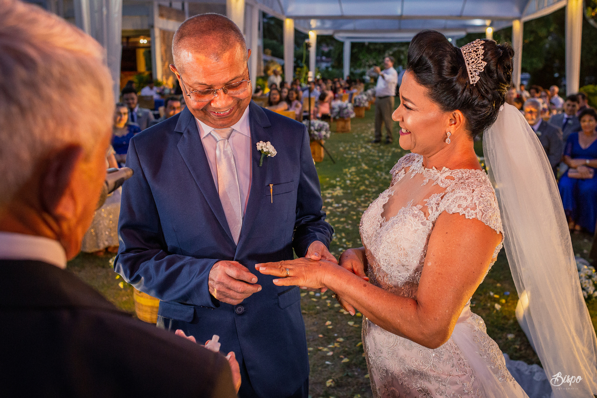 E essa, foi uma das mais lindas e emocionantes que conhecemos em 2018. A história de amor da Sra. Auxiliadora e do Sr. Robério. Conhecemos esse casal através de uma cerimonialista que se tornou muito querida por nós, a Roseane Carvalho. A Rose entrou em contato conosco, e marcamos uma reunião com ela, o Sr. Robério, a filha e o genro. É incrível como Deus sempre coloca pessoas maravilhosas em nossas vidas! Estávamos muito ansiosos por esse casamento, pra contar essa história. Não é todo dia que um casal “maduro”, que já vivem juntos há 34 anos, com 3 lindos filhos, decidem realizar uma cerimônia de casamento, consagrando essa união à Deus! Se todo mundo bem soubesse, faria isso. Não pela cerimônia, não pela festa, e sim, por entregar esse amor nas mãos do Único que pode cuidar! ♥
