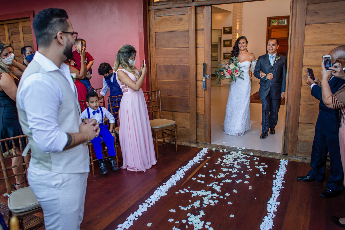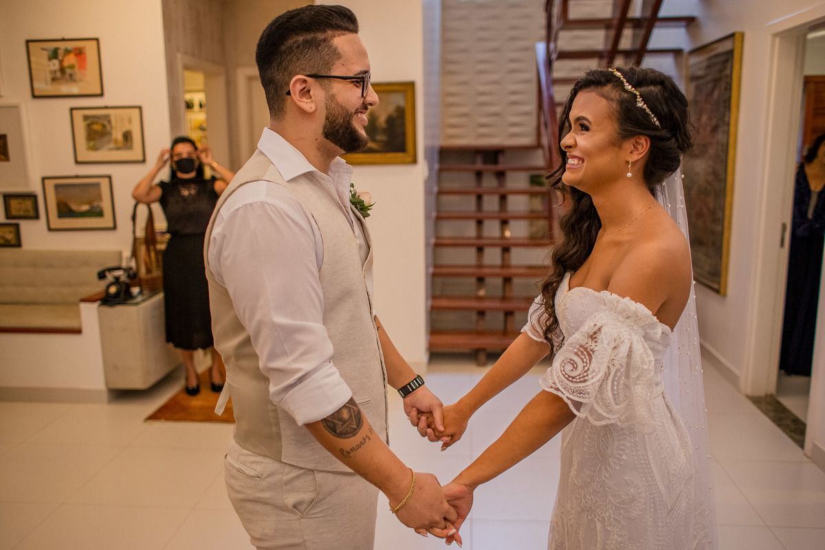 Mais um casal que sonhou, mas precisou adaptar o seu sonho à essa realidade temporária. A data do casamento continuou a mesma, conforme planejado anteriormente, porém, não houve a presença física de muita gente querida. Os convidados puderam viver esse sonho junto com os noivos via transmissão online.