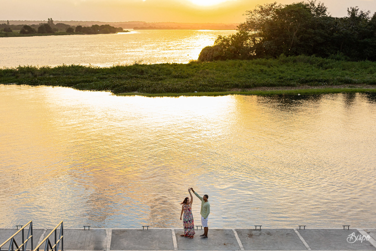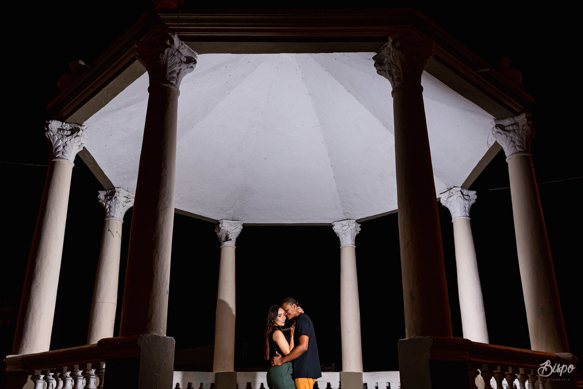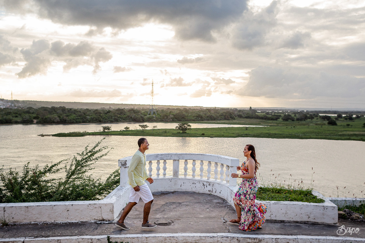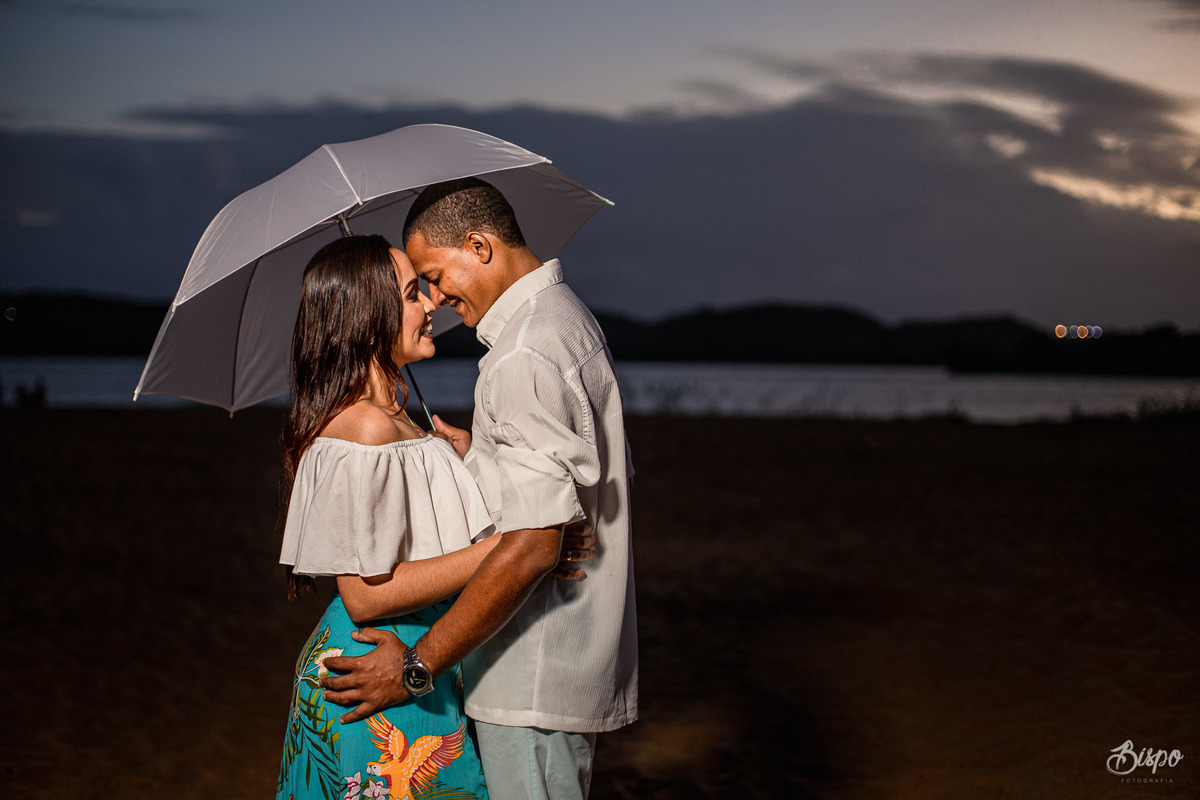 O tempo estava ao nosso favor, e conseguimos aproveitar cada local da cidade, a Casa da Aposentadoria, com uma bela vista para o Rio São Francisco, a Rocheira, o novo calçadão que fizeram na beira do rio. Detalhe, um casal de padrinhos que moram lá estavam presentes, acompanhou todo o ensaio e nos levou nesse calçadão que possui uma vista linda para o pôr do sol. Quando começou a escurecer, fomos na orlinha/prainha onde em meio ao chuvisco pudemos aproveitar o guarda-chuva e fazer belíssimas fotos com o casal. Com eles não tem tempo ruim, topam tudo e mais um pouco! É maravilhoso encontrar casais assim!! Por fim, fomos até o centro da cidade que já estava quase fechando, e exploramos a arquitetura histórica, as luzes das ruas e um coreto que fica em uma das praças! Batemos o recorde de duração, hein? Saímos de Penedo por volta das 20h30. E quer saber? Se não tivesse escurecido, ainda estaríamos lá! Hahaha
