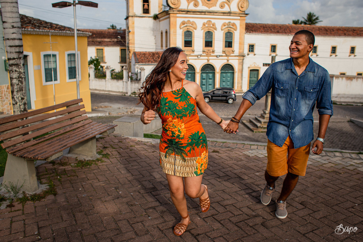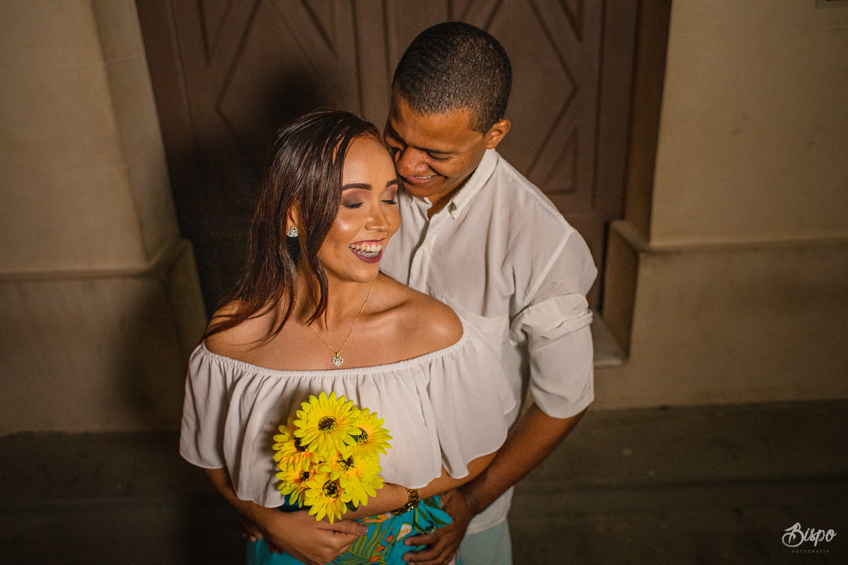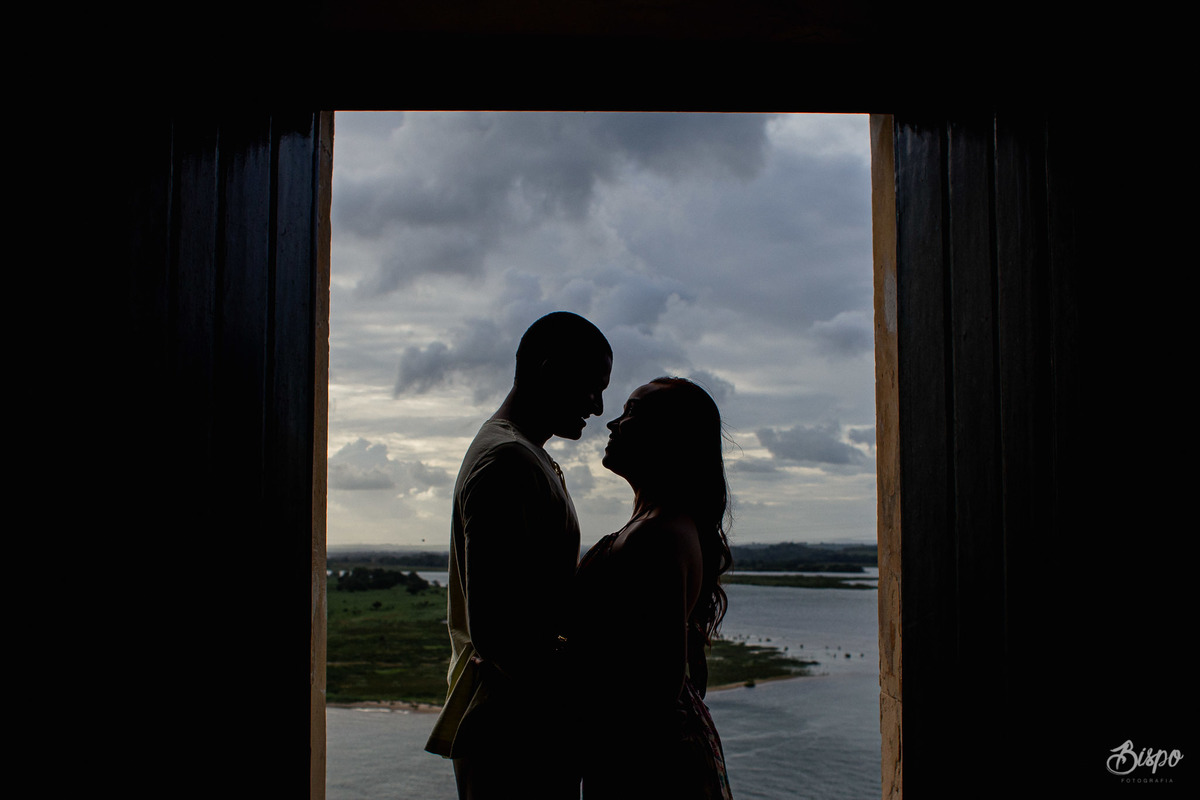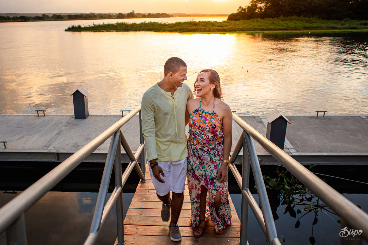 O tempo estava ao nosso favor, e conseguimos aproveitar cada local da cidade, a Casa da Aposentadoria, com uma bela vista para o Rio São Francisco, a Rocheira, o novo calçadão que fizeram na beira do rio. Detalhe, um casal de padrinhos que moram lá estavam presentes, acompanhou todo o ensaio e nos levou nesse calçadão que possui uma vista linda para o pôr do sol. Quando começou a escurecer, fomos na orlinha/prainha onde em meio ao chuvisco pudemos aproveitar o guarda-chuva e fazer belíssimas fotos com o casal. Com eles não tem tempo ruim, topam tudo e mais um pouco! É maravilhoso encontrar casais assim!! Por fim, fomos até o centro da cidade que já estava quase fechando, e exploramos a arquitetura histórica, as luzes das ruas e um coreto que fica em uma das praças! Batemos o recorde de duração, hein? Saímos de Penedo por volta das 20h30. E quer saber? Se não tivesse escurecido, ainda estaríamos lá! Hahaha