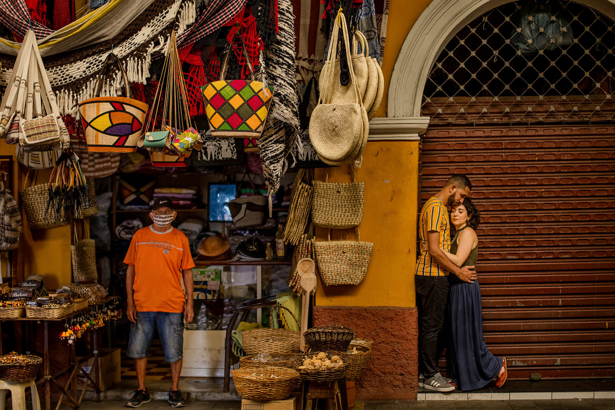 O Mercado Municipal foi a primeira locação desse ensaio de 2 dias, rsrs. Além dele, à pedido do noivo, também fizemos fotos no Teatro Atheneu. O terceiro e último local escolhido por eles, foi as ruas estreitas de casas com uma arquitetura maravilhosa... Já sabem onde é, né? Claro, São Cristóvão! Esse casal especial, são artistas incríveis que admiramos muito! Eles têm muita história pra contar.. Dentre elas, um namoro de meses pela janela, durante a pandemia. Pensando na avó de Dani, eles respeitaram o distanciamento social e ficaram meses só se vendo pela janela, sem contato físico. Lindo, né? E forte. Um amor forte que resiste a tudo!