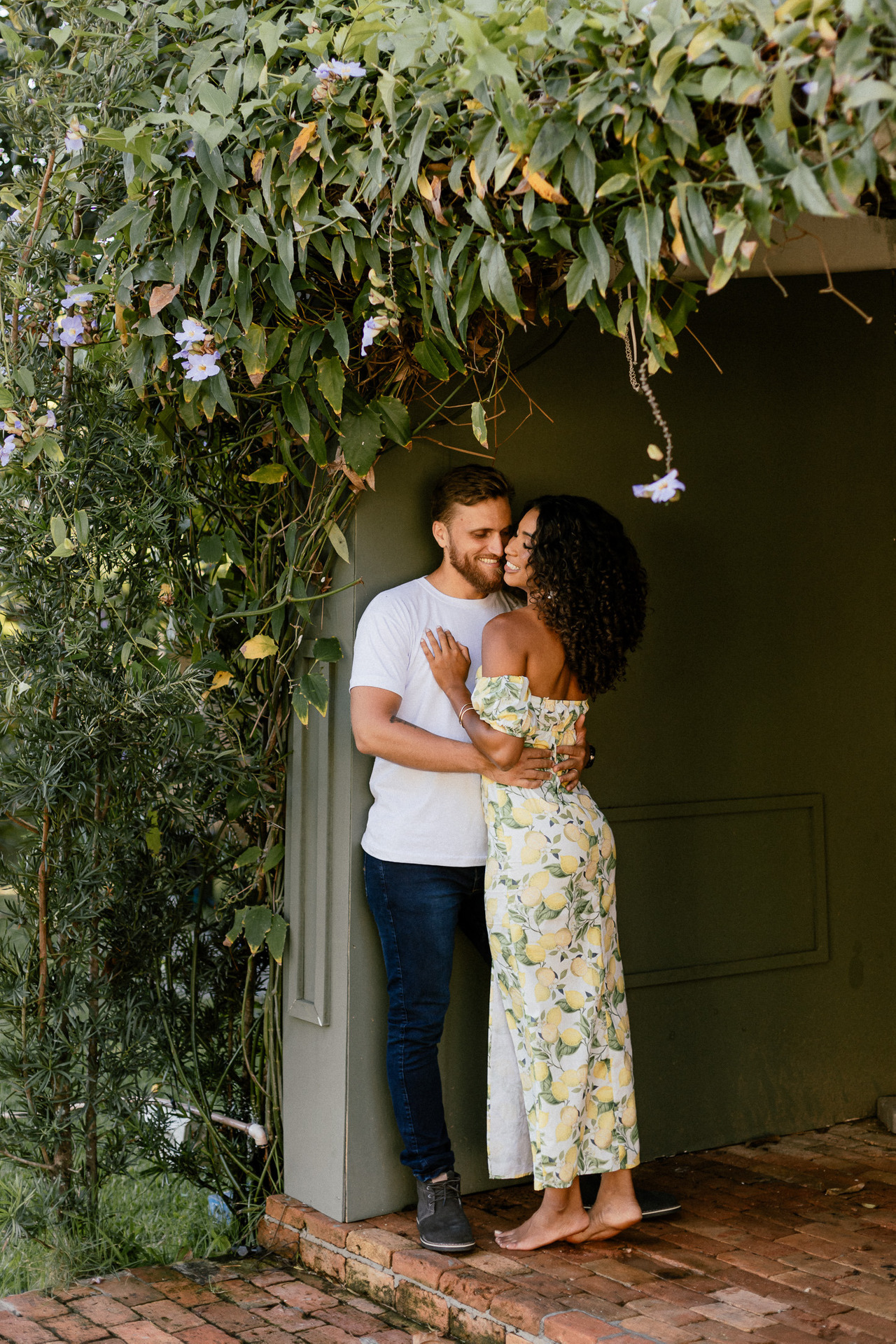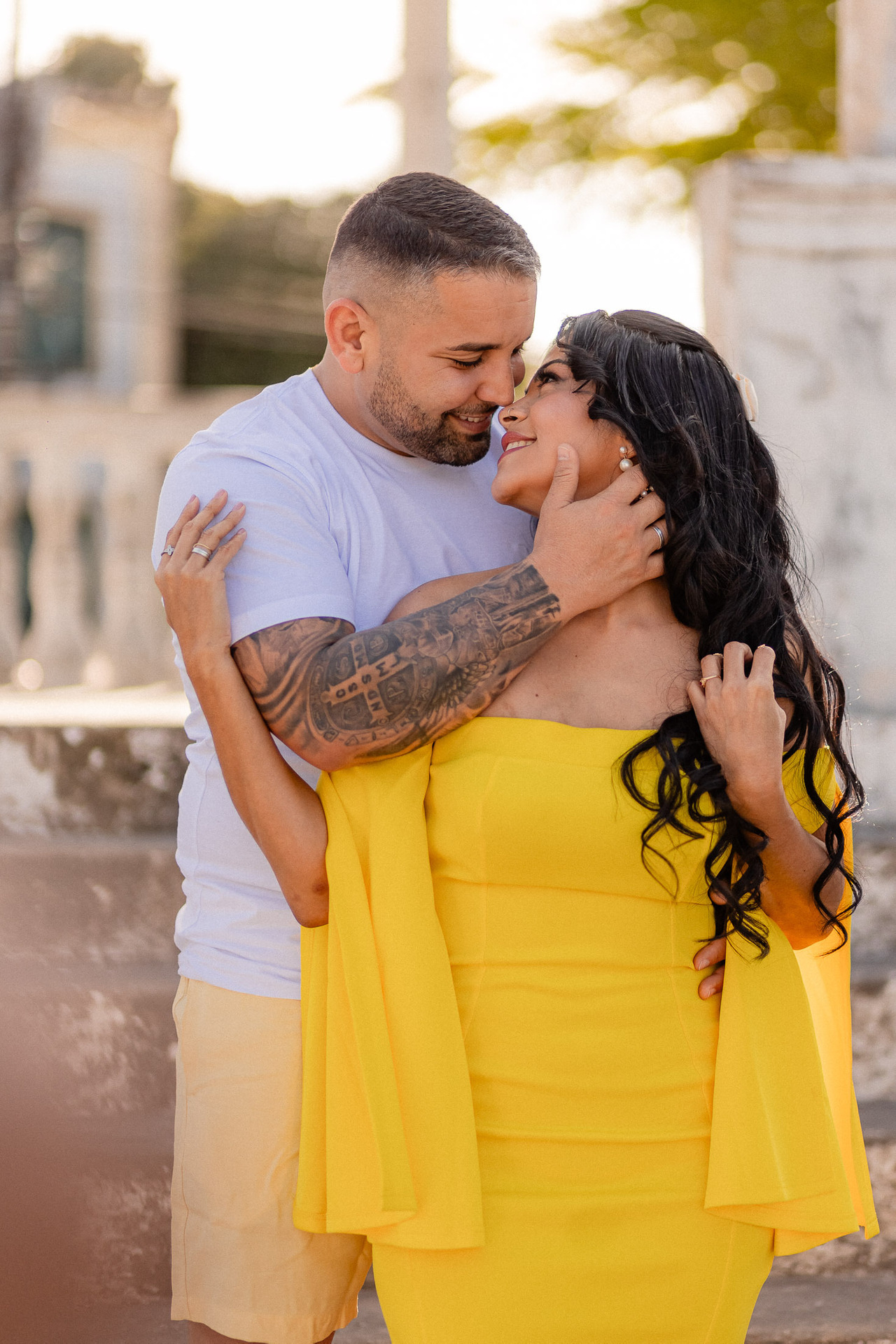 Cenários Urbanos: Para casais que amam a cidade, cores neutras como o preto, ou cores vibrantes, podem combinar perfeitamente com ambientes urbanos, criando uma vibe moderna e sofisticada.
