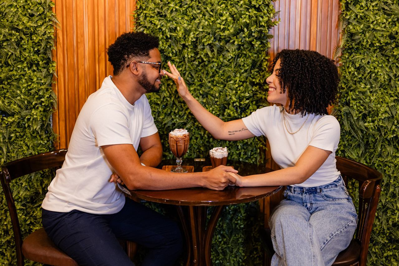 Cores suaves podem transmitir tranquilidade, romance e delicadeza. São perfeitas para casais mais reservados ou que desejam um ensaio em ambientes naturais.
