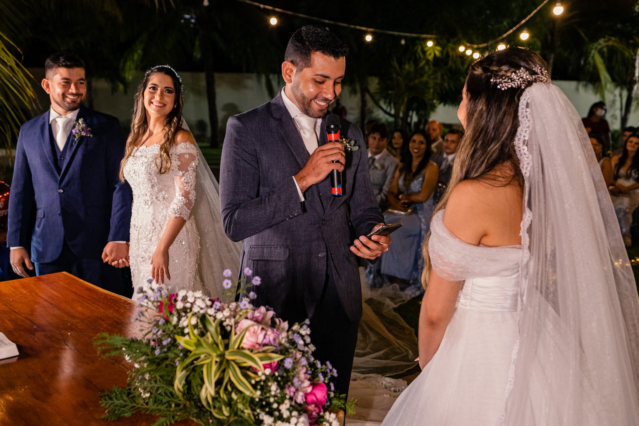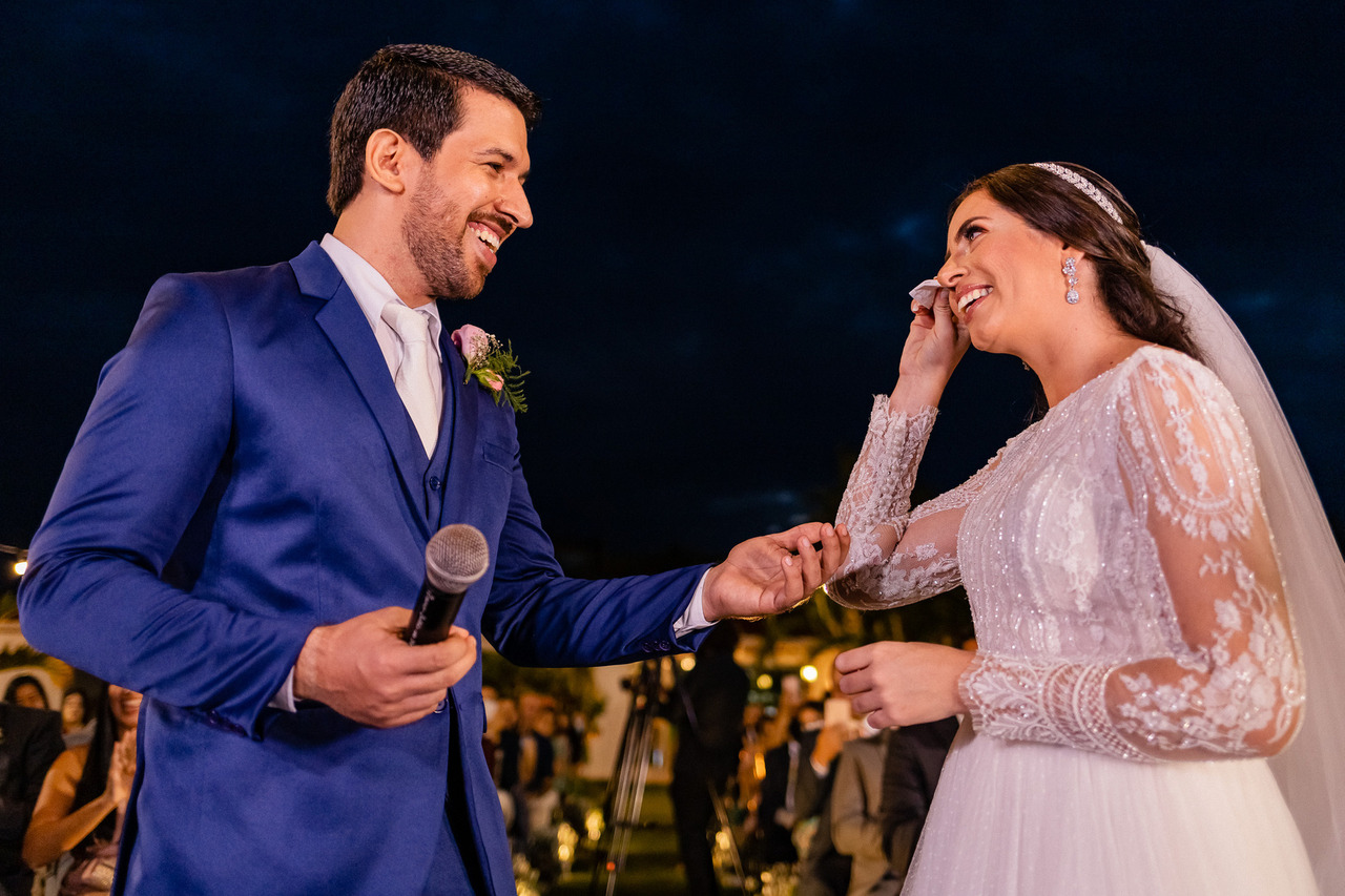 Não precisa fingir ser quem você não é, nessa hora. Se você é uma pessoa mais brincalhona do que romântica, use isso de forma positiva. Não tenha como objetivo criar votos perfeitos pra emocionar os convidados, o que vai emocionar é a verdade do seu coração.