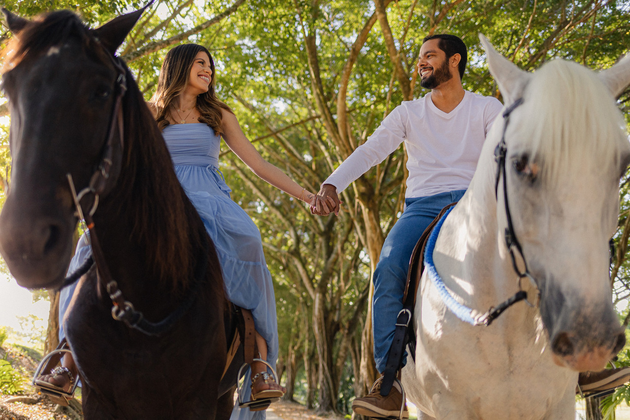 O Haras Kassungue, localizado em Lagarto, é um local particular, com bastante área aberta e contato direto com a natureza, o que já traz um clima mais reservado e tranquilo para o ensaio. Um dos grandes diferenciais do espaço é a presença dos cavalos, que podem ser incluídos nas fotos e deixam o ensaio ainda mais marcante e com identidade. O ambiente tem um estilo mais rústico, com paisagens amplas e aquele visual de campo que favorece fotos mais leves e espontâneas. É uma ótima escolha pra casais que querem algo ao ar livre, diferente e com um toque mais autêntico.