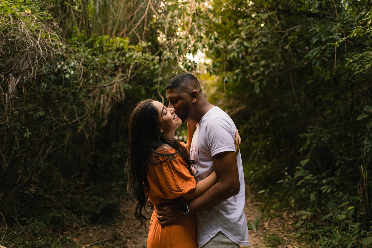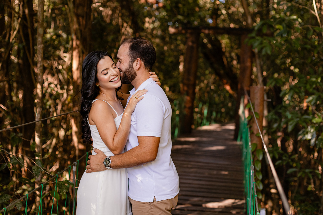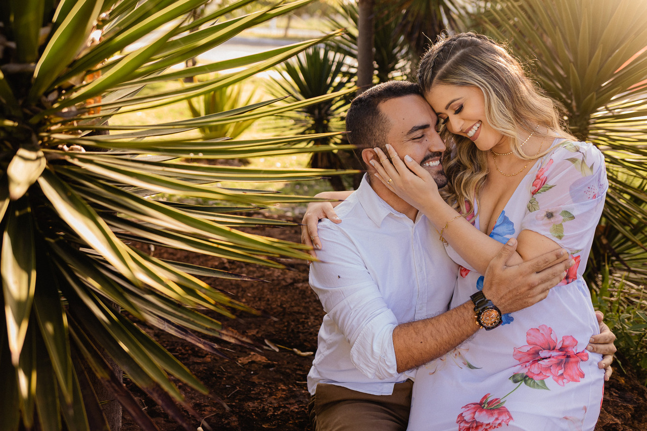 O lugar influencia na luz, no clima, no nível de conforto e até em como vocês vão se sentir durante o ensaio. E quando o casal se sente à vontade, tudo flui melhor: as fotos ficam mais naturais, mais leves e com muito mais verdade. Muita gente pensa só em “um lugar bonito”, mas o mais importante é escolher um cenário que combine com o estilo de vocês, seja algo mais intimista, ao ar livre, urbano ou até mais diferente do comum.