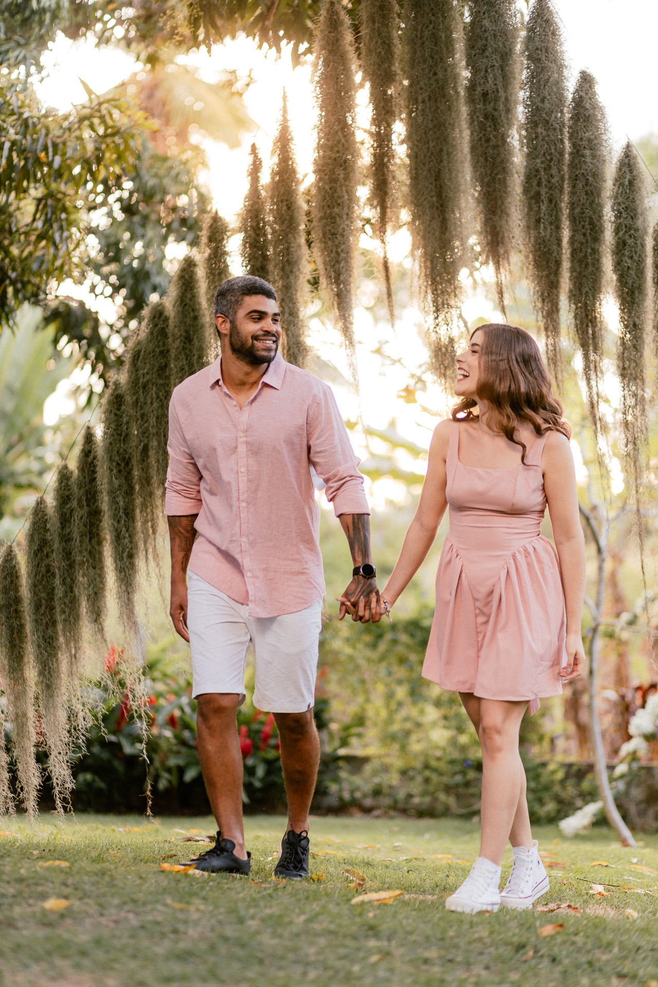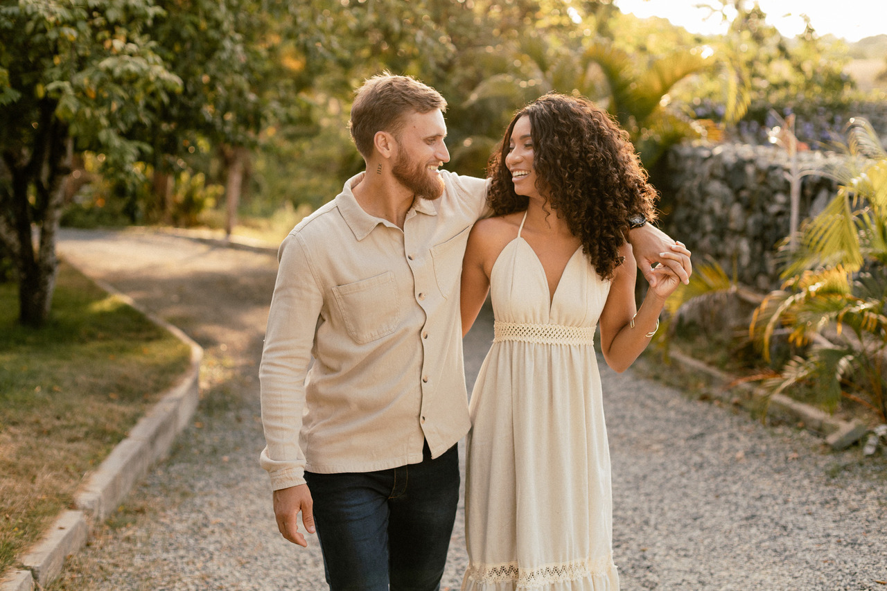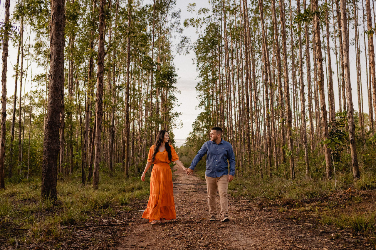 O lugar influencia na luz, no clima, no nível de conforto e até em como vocês vão se sentir durante o ensaio. E quando o casal se sente à vontade, tudo flui melhor: as fotos ficam mais naturais, mais leves e com muito mais verdade. Muita gente pensa só em “um lugar bonito”, mas o mais importante é escolher um cenário que combine com o estilo de vocês, seja algo mais intimista, ao ar livre, urbano ou até mais diferente do comum.