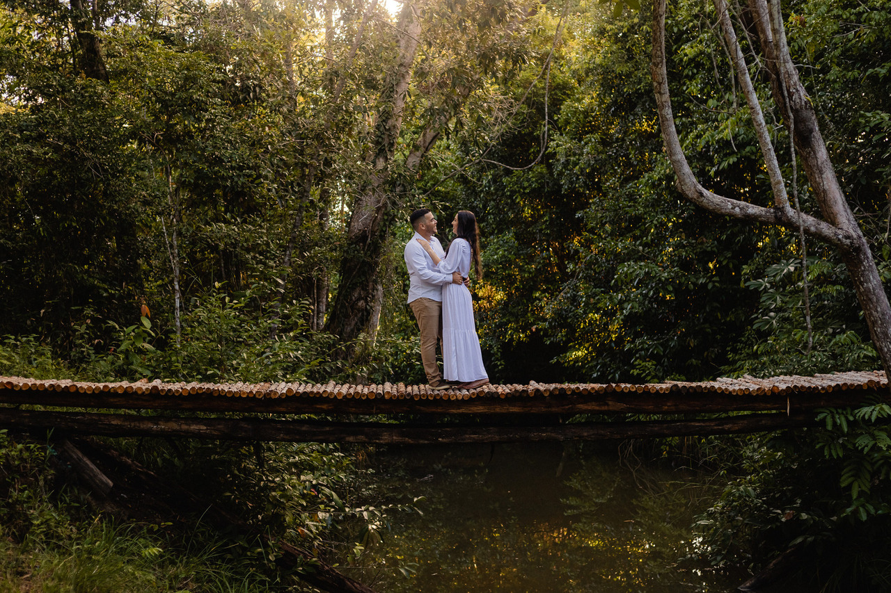 A Reserva Boa Luz é um espaço bem estruturado, com áreas verdes, lagos e cenários organizados. Isso facilita bastante o ensaio, já que permite variar sem precisar de deslocamento. É uma ótima opção pra quem quer natureza com conforto e previsibilidade. Confira mais fotos aqui.
