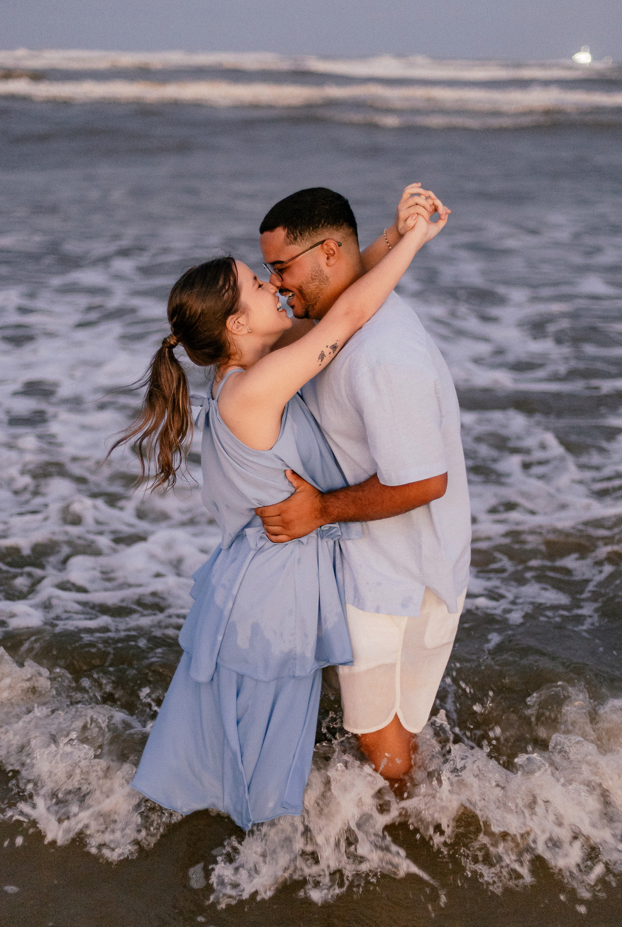 3- Use roupas leves e fluídas: As roupas mais soltas vão dar bastante movimento às fotos e fica incrível. Além de secarem mais rápido, o que ajudará quando vocês voltarem para casa, se decidirem entrar na água como a Duda e o Júlio fizeram!