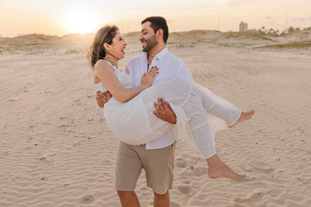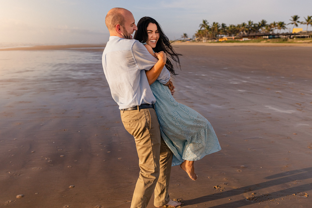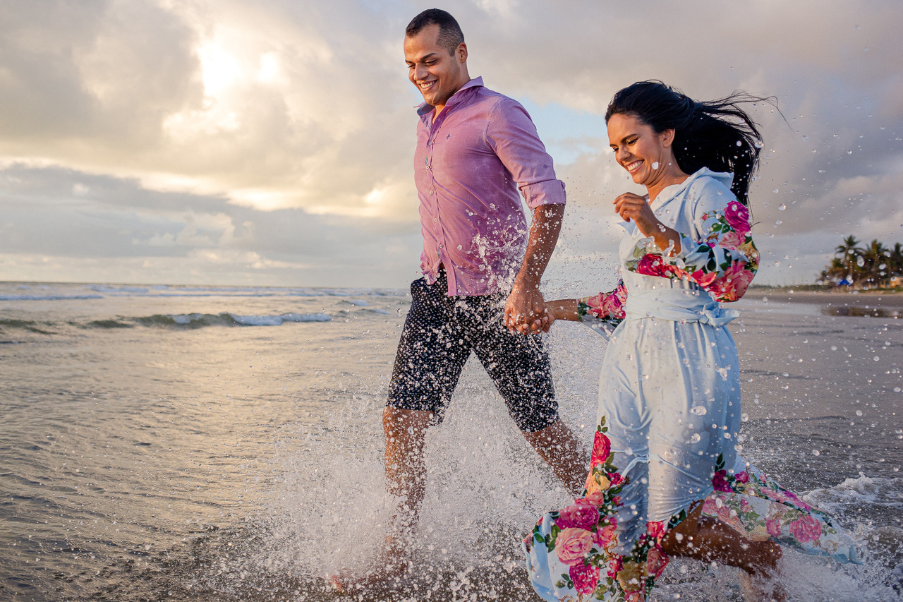 3- Use roupas leves e fluídas: As roupas mais soltas vão dar bastante movimento às fotos e fica incrível. Além de secarem mais rápido, o que ajudará quando vocês voltarem para casa, se decidirem entrar na água como a Dani e o Eduardo fizeram!